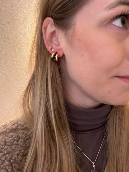 Kleine goude oorbellen met zwart accent
