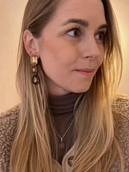 Grote statement oorbellen met bruintinten in matte afwerking.