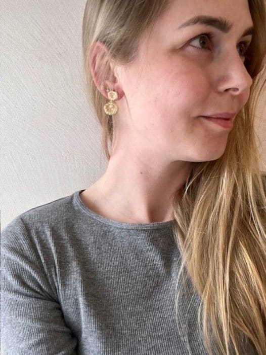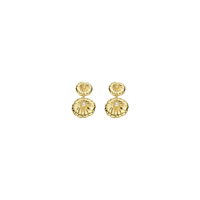 Gouden glanzende schelpoorbellen met kleine pareltjes in.