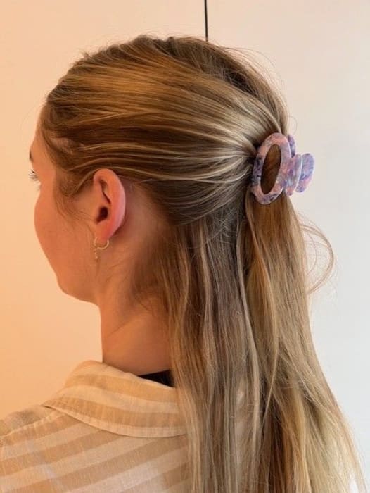 Middelgrote haarspeld in blauw, paars en rozetinten