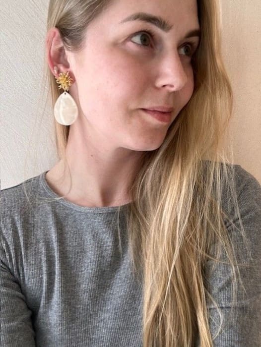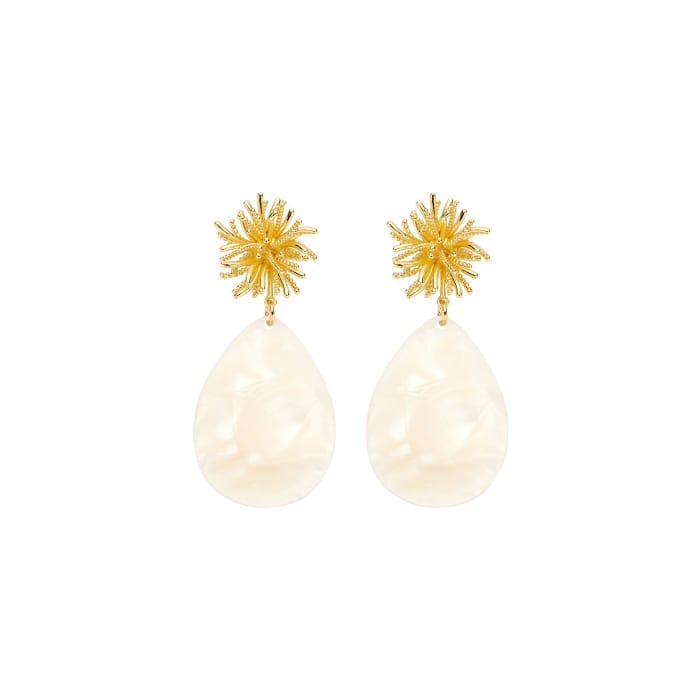 Grote oorbellen in beige/wit met statement zoneffect in goud
